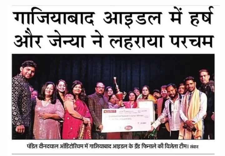 A huge congratulations to all the exceptional winners of Ghaziabad Idol Season 1 from Dhindora Music! In the Junior Category, Ms. Jenya Vishwakarma has proven herself as the 1st Winner with her outstanding voice, while Ms. Shradha Bal, the 1st Runner-up, and Mr. Virat Sharma, the 2nd Runner-up, both delivered amazing performances that captivated the audience. In the Senior Category,Mr. Harsh Chawla claimed the 1st Winner spot with his powerful vocals, and Mr. Mohiuddin Kadri, the 1st Runner-up, along with Mr. Shivam Sirohi, the 2nd Runner-up, showcased incredible talent and dedication. We are immensely proud of each one of you, and your musical journey is just beginning. Keep shining and continue to inspire us all with your remarkable talent!